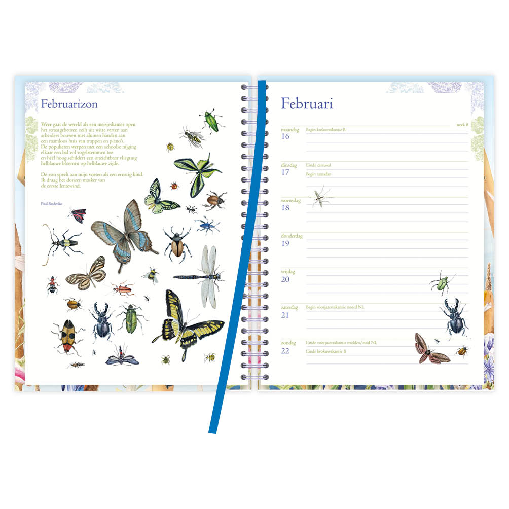 Deze luxe en stijlvol vormgegeven bureau-agenda van Janneke Brinkman is voorzien van een mooie bladwijzer en een praktisch insteekvak. De agenda bevat bovendien alle Nederlandse en Belgische feest- en vakantiedagen. Deze luxe bloemenagenda met gedichten, quotes en persoonlijke verhalen zit bordevol afbeeldingen van recente werken van Janneke Brinkman: al meer dan 25 jaar maakt zij iedere maand een nieuwe aquarel van bloemen die haar op dat moment inspireren. In deze agenda neemt Janneke u graag mee op haar reis door de botanische wereld.