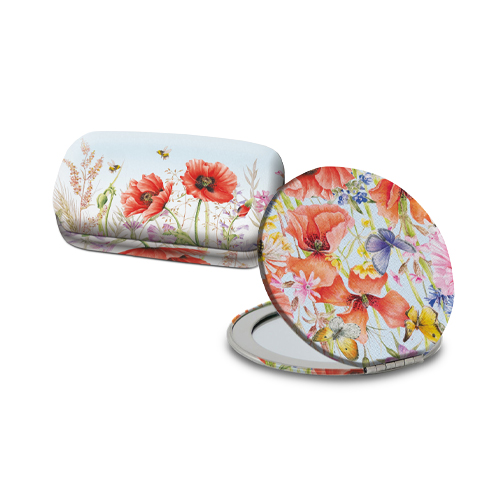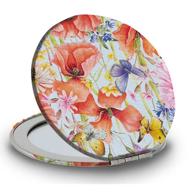 Een onmisbare accessoire voor in elke tas; de originele reisspiegeltjes. Het reisspiegeltje is aan de buitenzijde bekleed met zacht microvezel en heeft een museale print. De binnenkant bestaat uit twee spiegels van helder glas. Door de klapscharnieren sluiting blijft de reisspiegel stevig dicht zitten en kan deze niet beschadigen. – Doorsnede 6,5 cm – Dikte 0,9 cm – Buitenzijde full color bedrukt microvezel – Binnenzijde twee spiegeltjes