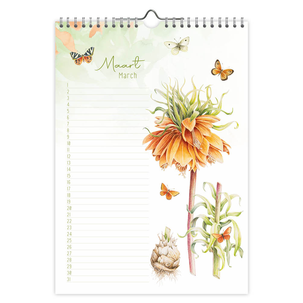 + Free ShippingDeze stijlvol vormgegeven verjaardagskalender van Janneke Brinkman-Salentijn bevat elke maand een prachtige tekening van de botanische natuur. Al bijna 30 jaar maakt zij iedere maand een nieuwe aquarel van bloemen die haar op dat moment inspireren. Door de ringband is de kalender bovendien makkelijk op te hangen. Formaat: 30 x 21 cm